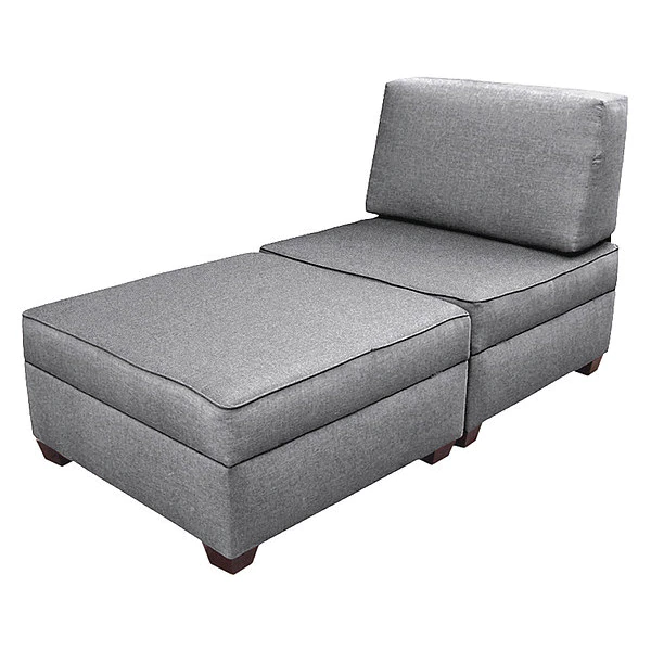 Chaise Lounge, Overall Width 72 in, Overall Depth 36 in, Overall Height 18 in, Upholstery Color Gray, Frame Color Black, Number of Compartments 2, Weight Capacity 275 lb, Assembled, Seat Height 18 in, Ottoman Dimensions 18 in H x 72 in W x 36 in D, Compartment Width 35 in, Compartment Depth 8 1/2 in, Compartment Height 35 in, Upholstery Material Polypropylene, Frame Material Wood, Leg Material Wood, Leg Color Brown, Leg Height 3 in, Leg Glides Included Yes, Removable Seat Cushions No
