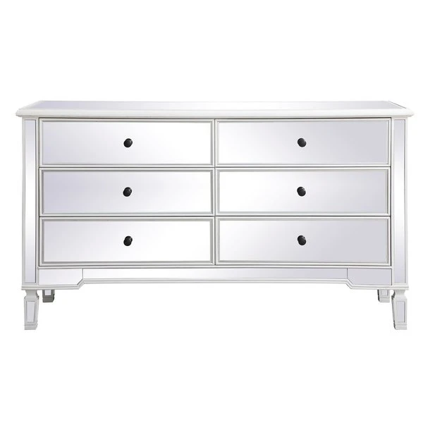 Elegant Decor 60 Inch Mirrored 6 Drawer Chest In Antique White