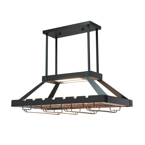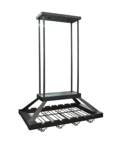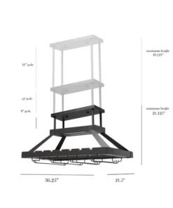 Instead of displaying your variety of wine selections the old fashioned way, why not make the upgrade to this beautiful overhead metal wine rack? Equipped to hold a combination of 14 standard wine bottles and 16 stemmed wine glasses, it serves both a functional and style purpose for your space. This product comes with a total of 12 poles that are suited to adjust the height of the wine rack to adapt to both tall and low ceilings.