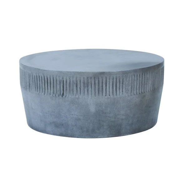 The Sempre Coffee Table is a low rounded concrete drum with notched detailing at the upper rim. The grey polished concrete and versatile shape means this design works in many styles of décor.