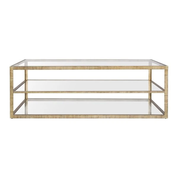 The Strie Coffee Table brings instant modern glam to a living room. Its metal frame comes in a luxe gold finish and holds three glass shelves, creating a chic space that's both stylish and functional. With its open design, this piece provides a useful surface without encroaching on a sense of light and space. The Strie is a sleek, contemporary choice to add dimension to a living room.