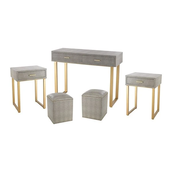 When eclectic becomes too fabulous, it's given another name: Exquisite. Introducing the Beaufort Point Series Faux Shagreen 5-Piece Furniture Set: Already exhibiting luxurious Art Deco-style flair with their streamlined look and brightly Golden appointments, each of the Sands' thoughtfully coordinated pieces boasts a surface of sensually pleasing granular hide patterns evocative of authentic Shagreen-applied furniture. Imagine them anchoring a decadence-themed sitting room, office, or master retreat.
