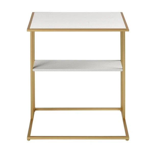 The Fawley Table is ideal for accenting a modern luxe space. Its iron frame comes in a glam, gold finish while its table top features white faux leather. Below the table top, an extra shelf provides added storage space for books or decorative objects. The Fawley is perfect for a living room, bedroom or hallway.