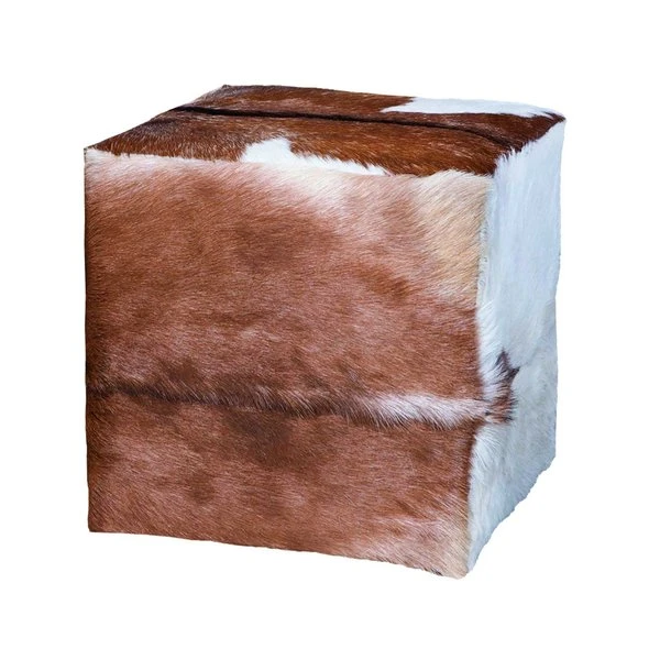Goat Hide covered mahogany Ottoman.
