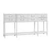 Gently curved accent chest with three drawers, bracket feet, a heavy crackle hand painted vintage turquoise blue finish.