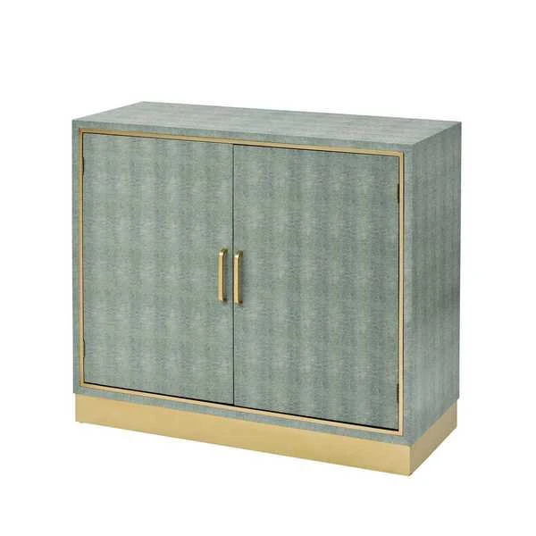 The Sands Point cabinet has its inspiration set in the early days of book and trunk binding when Shagreen (Ray fish skin) would be used as a hardy and tactile covering. Updating this style, we have chosen to opt for equally hard wearing Faux Shagreen to give this cabinet its beautiful, soft grey finish. Featuring an internal shelf and accented with gold handles, this cabinet is a stylish and useful addition to a modern interior. Matching items are available in the Sands Point collection.