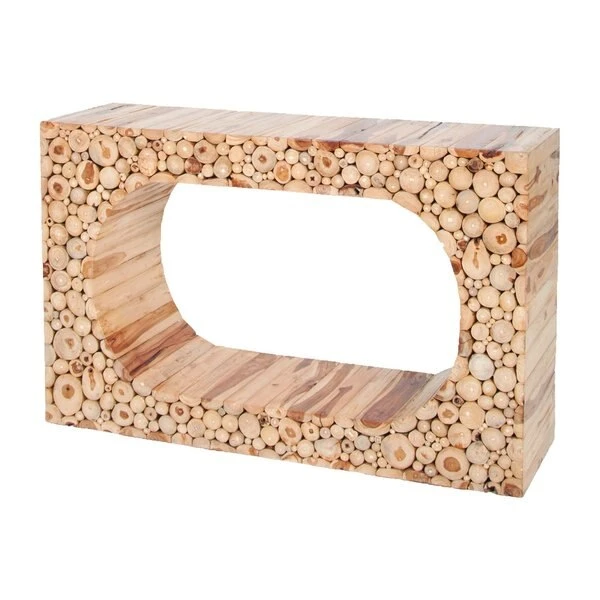 Modern invents, but more recently, it preserves. Our beautifully hand-crafted Vail Console Table preserves the iconic silhouette of a stack of winter firewood while reinventing it as something new. Perfect for a clean, minimal office or foyer. Blends crisp angles with provocative, sculptural contours. Gorgeous Natural color.