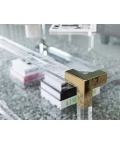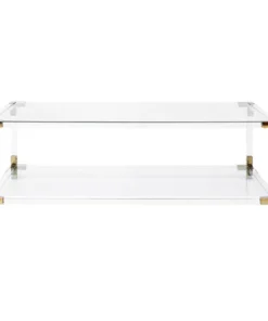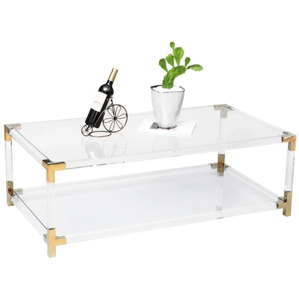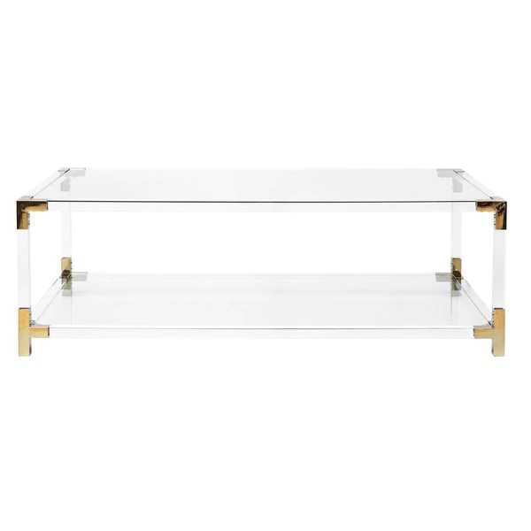 Showcase trinkets and inspire modern glam themes with this acrylic coffee table. Designed with tempered glass shelves, acrylic frame, and gold metal edges, this coffee table offers durable and decorative function for everyday use. Large surface area and bottom shelf allows you to showcase trinkets, plants, and books to keep living room essentials handy. Consider this coffee table for high end living and practical lifestyles.