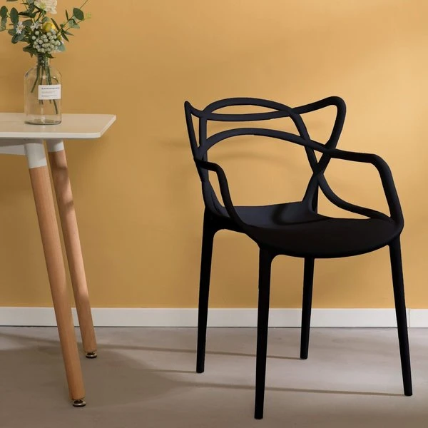 Embrace classic mid-century modern style with the timeless plastic dining armchair design. Crafted with a one-piece molded plastic chair seat, arms, back, and legs, this side chair is perhaps the most comfortable, practical, and durable seat you’ll ever sit upon. Made with recyclable polypropylene (PP) plastic in a matte, subtly textured finish, the chair seat is ergonomically molded to with bend resistant back support. Its cut-out three backs design makes it comfortable for any body type. Non-scratch leg caps will protect your floor from scratches and keep the chair evenly leveled. These arm chairs feature a basic modern minimalist design that looks especially great in Nordic, Scandi, and contemporary homes, but their simple clean design lets it fit in with any home décor theme. You’ll want them in every room in your house; kitchen, dinette, dining room, living room, study, or home office!