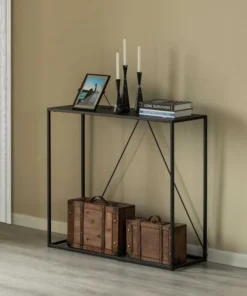 This Console Table is the perfect addition to your living room, office, bedroom or entryway. Proudly display magazines and more on the top. Featuring one shelve for optimum space and storage, the minimalist contemporary design of this console table will conserve space in your living space.