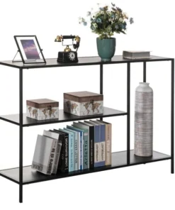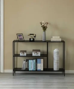 This Console Table is the perfect addition to your living room, office, bedroom or entryway. Proudly display magazines and more on the top. Featuring four open shelves for optimum space and storage, the minimalist contemporary design of this console table will conserve space in your living space.