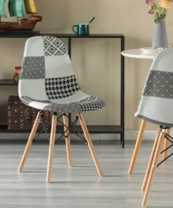This Accent chair has a unique, bright, colorful fabric that makes it comfortable to sit on it. The modern style matches any room decor and it can be used to decorate virtually any space. The seat is fully covered with fabric which includes the seat front, back, and bottom, and the legs are wooden.