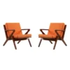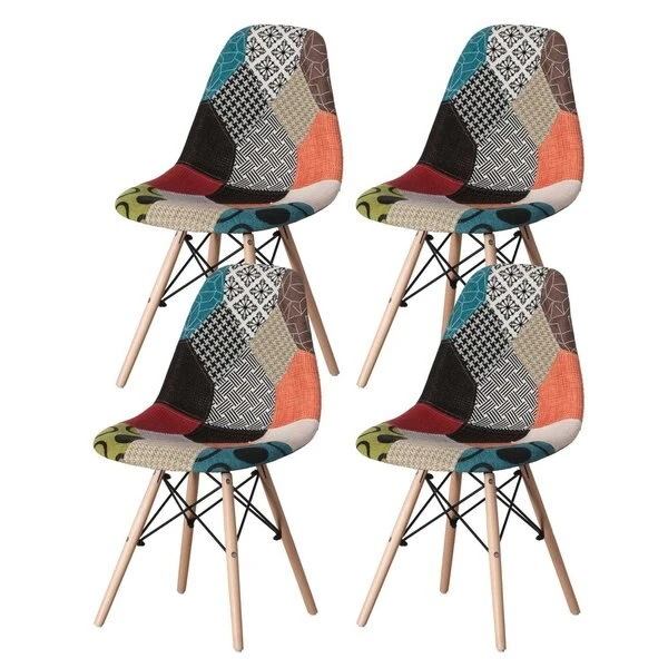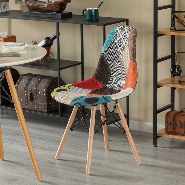 This Accent chair has a unique, bright, colorful fabric that makes it comfortable to sit on it. The modern style matches any room decor and it can be used to decorate virtually any space. The seat is fully covered with fabric which includes the seat front, back, and bottom, and the legs are wooden.