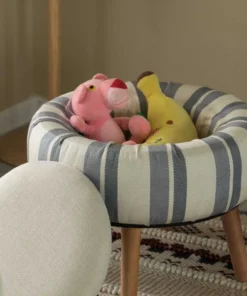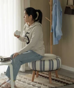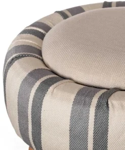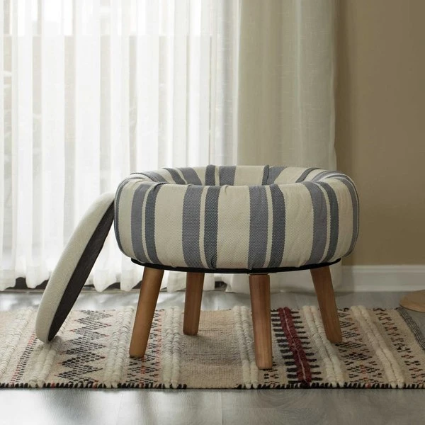 <p>Home entrances and living rooms need practical and decorative furniture to make home feel more inviting. This storage ottoman invites decorative charm and practical functions wherever placed. This round shape stool serves as a seat, storage holder, and ottoman. Thick fabric on solid wooden legs makes it durable to use. Top seat opens up to reveal large interior area to store living room or bedroom items and soft cushion top makes it comfortable to use as a seat. This storage ottoman is what makes rooms look complete!</p><ul><li>SIZE: 21.75" Dia. x 16.5" H</li><li>STORAGE: Soft comfy top seat, easy to lift lid reveals large interior storage space</li><li>MATERIAL: Fabric upholstered design and solid wood legs for a modern appeal</li><li>MULTIUSE: Use as a foot rest, storage trunk, ottoman, toy chest, bedroom or blanket storage</li><li>DISPLAY: Fits into any style room such as living room, dining room, entryway, office, or bedroom.</li></ul>