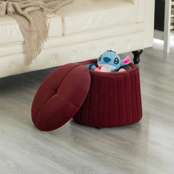 Home entrances and living rooms need practical and decorative furniture to make home feel more inviting. This velvet storage ottoman invites decorative charm and practical functions wherever placed. This mushroom shape bench serves as an ottoman, seat, stool, storage holder, foot rest, toy or blanket storage. Thick velvet on a sturdy wooden frame makes it durable to use. Top seat opens up to reveal large interior area to store living room or bedroom items and soft cushion top makes it comfortable to use as a seat. This storage ottoman is what makes rooms look complete!