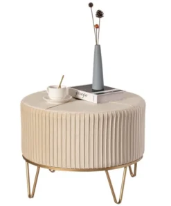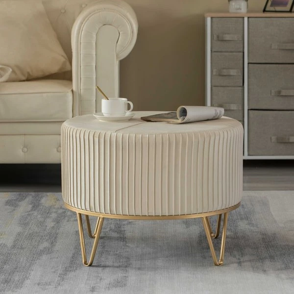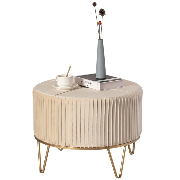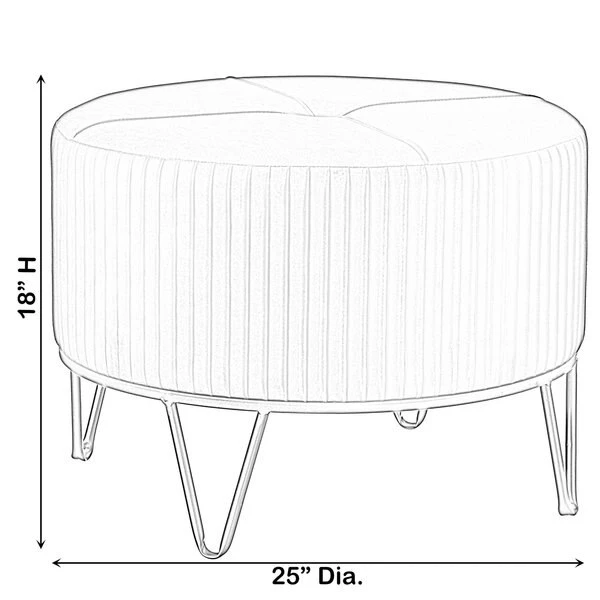 <p>Home entrances and living rooms need practical and decorative furniture to make home feel more inviting. This round ottoman invites decorative charm and practical functions wherever placed. Velvet fabric composition offers a durable and comfortable seat to use as an ottoman, foot stool, or vanity stool. Thick velvet on a sturdy metal base makes it durable to use. Plush velvet top and gold finish combine to create a stylish piece.</p><ul><li>SIZE: 25" Dia, x 18" H</li><li>MATERIAL: Durable metal base for continual use</li><li>DECOR: Velvet top and gold metal base offers a modern and chic design</li><li>USE IN: Fits into any style room such as living room, dining room, entryway, office, or bedroom</li><li>MULTIUSE: Use as an ottoman, serving table, foot stool, or vanity stool</li></ul>