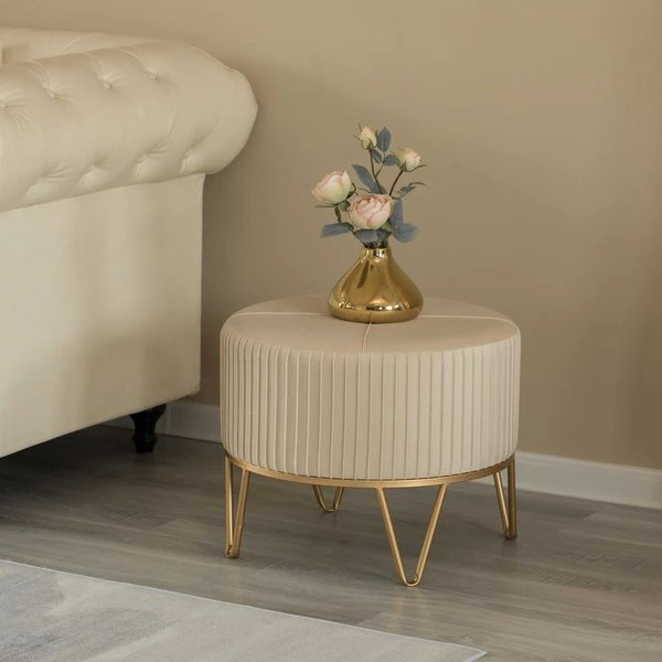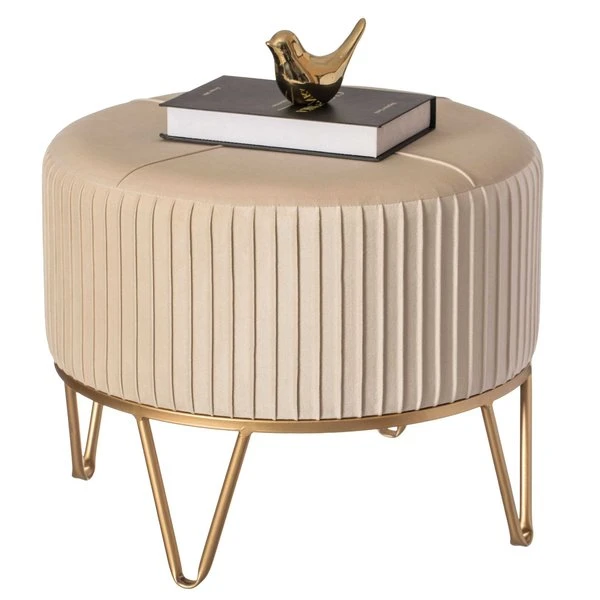 <p>Home entrances and living rooms need practical and decorative furniture to make home feel more inviting. This round ottoman invites decorative charm and practical functions wherever placed. Velvet fabric composition offers a durable and comfortable seat to use as an ottoman, foot stool, or vanity stool. Thick velvet on a sturdy metal base makes it durable to use. Plush velvet top and gold finish combine to create a stylish piece.</p><ul><li>SIZE: 20.75" Dia, x 16.5" H</li><li>MATERIAL: Durable metal base for continual use</li><li>DECOR: Velvet top and gold metal base offers a modern and chic design</li><li>USE IN: Fits into any style room such as living room, dining room, entryway, office, or bedroom</li><li>MULTIUSE: Use as an ottoman, serving table, foot stool, or vanity stool</li></ul>