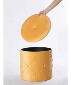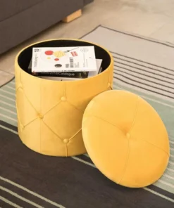 This is where furniture get smart. Velvet fabric composition offers a durable and comfortable seat to use as an ottoman, serving table, foot stool, or vanity stool. Button tufted design around the ottoman is what makes modern style proud, welcomed into any style room decor. Top lid reveals interior storage space to store books, magazines, and blankets. It's those small and practical decor furniture that makes all the difference.