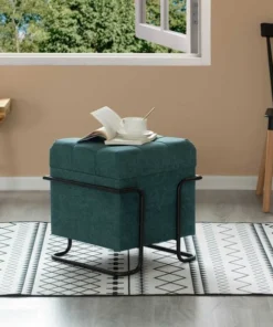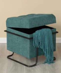 Home entrances and living rooms need practical and decorative furniture to make home feel more inviting. This storage ottoman invites decorative charm and practical functions wherever placed. This squared shape bench serves as a seat, storage holder, and ottoman. Thick fabric on a sturdy metal frame makes it durable to use. Top seat opens up to reveal large interior area to store living room or bedroom items and soft cushion top makes it comfortable to use as a seat. This storage ottoman is what makes rooms look complete!