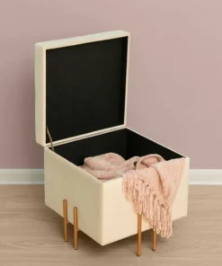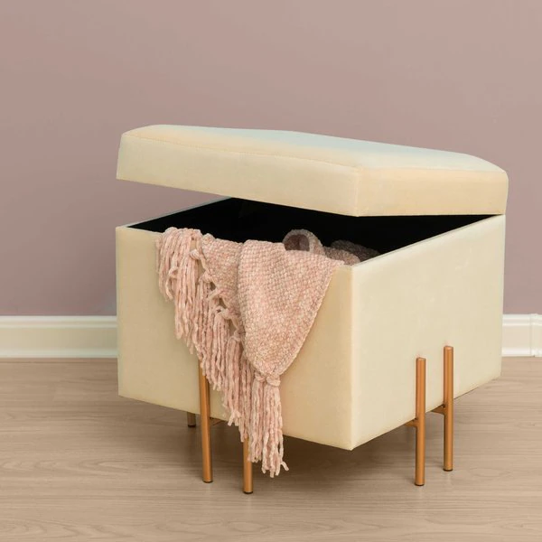 Home entrances and living rooms need practical and decorative furniture to make home feel more inviting. This velvet storage ottoman invites decorative charm and practical functions wherever placed. This squared shape bench serves as a seat, storage holder, and ottoman. Thick velvet on a sturdy metal frame makes it durable to use. Top seat opens up to reveal large interior area to store living room or bedroom items and soft cushion top makes it comfortable to use as a seat. This storage ottoman is what makes rooms look complete!
