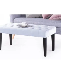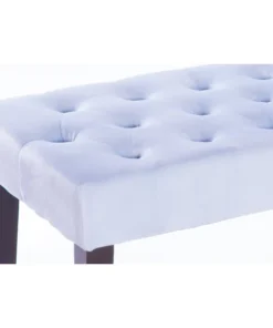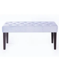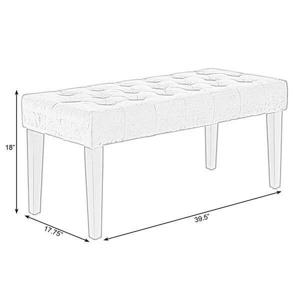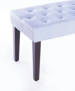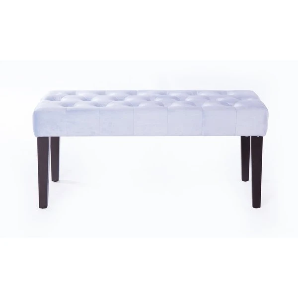 Home entrances and living rooms need practical and decorative furniture to make home feel more inviting. This velvet tufted ottoman/bench invites decorative charm and practical functions wherever placed. Thick velvet on a sturdy wooden frame makes this bench durable to use. With an eye for modern detail, this bench includes a soft velvet seat with button tufted design and dark wooden legs. Welcome home.