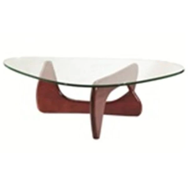 This table consists of three basic parts a beautiful glass top and two interlocking wood base pieces. This classic design was first produced in 1944 15mm thick tempered glass Solid wood base Dimensions:Height:16Width:50Depth:36Warranty:1 year