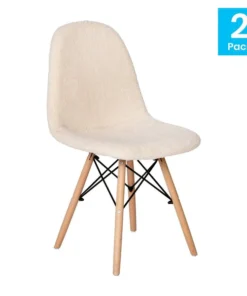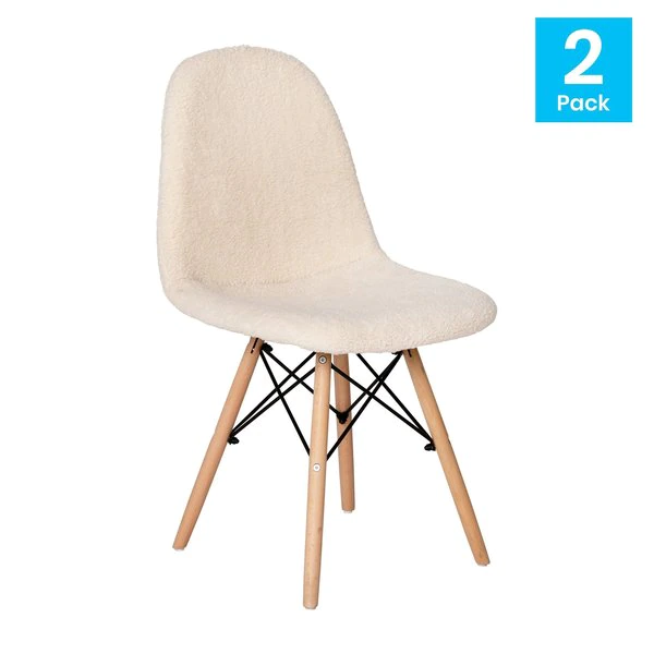 Flash Furniture 2 Pack Off-White Faux Sherpa Chairs with Wood Legs, 2PK