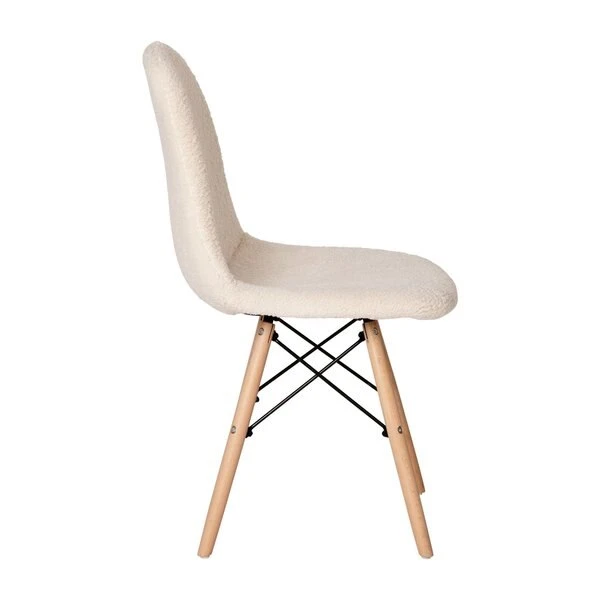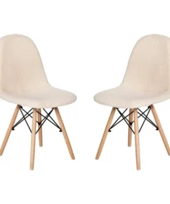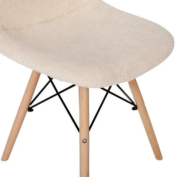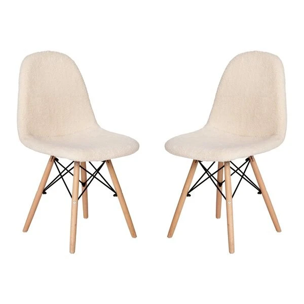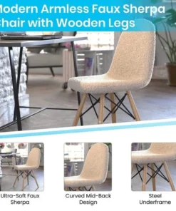 Brighten any room in your home with the unique look of this set of 2 faux sherpa upholstered scoop chairs. Whether you're moving into a new home or just want to give your current space an updated look, this cozy padded lounge chair is a perfect choice. The universal faux shearling covering effortlessly blends in any decor from rustic to industrial. Although this armless chair will add textural appeal to your space, it is also strong and durable. The steel frame and solid beechwood legs will provide a worry-free sitting experience in front of your vanity, in the living room, dining room, or bedroom. The armless design allows easy entry from multiple angles and gives a more open look to any room. Assembly is simple and takes less than 10 minutes for quick setup. Clean stains or spills with a damp cloth to maintain the look of your new chair. Pair this chair with our kids size model to give your mini-me a plush, snuggly seat.