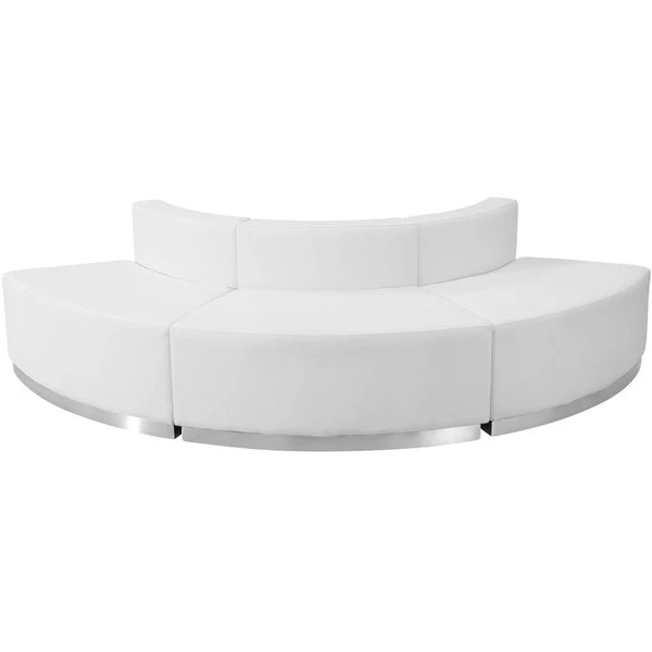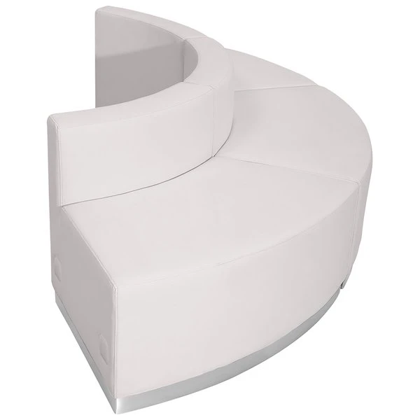 Your lobby or reception area is the forefront of your business and providing distinguished and comfortable seating is the first step towards making a great impression. This collection offers modular pieces that will allow you to reconfigure the space to accommodate your guests as your business grows. Purchase this complete set and add on any additional pieces now or later. <ul><li>Contemporary Reception Set</li><li>Modernize Your Business Office or Entry Way</li><li>Add on pieces as your business grows</li><li>Modular components make reconfiguring easy with endless possibilities</li><li>Features:</li><li>Melrose White LeatherSoft Upholstery</li><li>Exposed Embellished Stitching</li><li>Taut Seat and Back</li><li>Foam Filled Cushions</li><li>CA117 Fire Retardant Foam</li></ul>