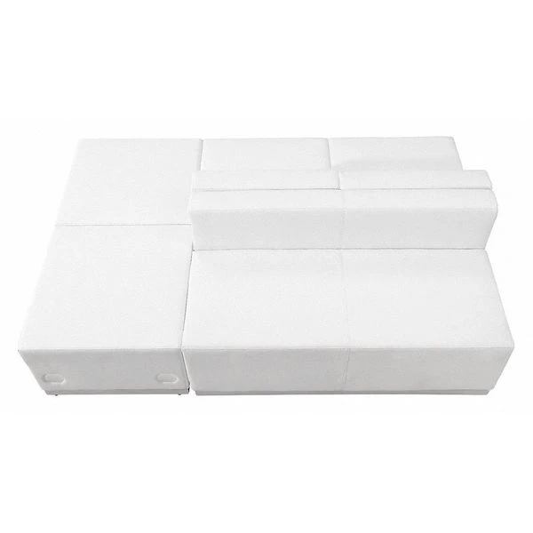 Your lobby or reception area is the forefront of your business and providing distinguished and comfortable seating is the first step towards making a great impression. This collection offers modular pieces that will allow you to reconfigure the space to accommodate your guests as your business grows. Purchase this complete set and add on any additional pieces now or later. <ul><li>Contemporary Reception Set</li><li>Modernize Your Business Office or Entry Way</li><li>Add on pieces as your business grows</li><li>Modular components make reconfiguring easy with endless possibilities</li><li>Features:</li><li>Melrose White LeatherSoft Upholstery</li><li>Exposed Embellished Stitching</li><li>Taut Seat and Back</li><li>Foam Filled Cushions</li><li>CA117 Fire Retardant Foam</li></ul>