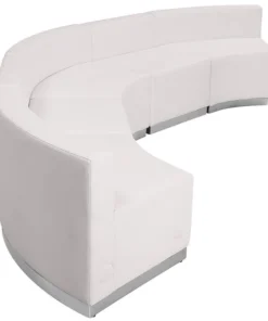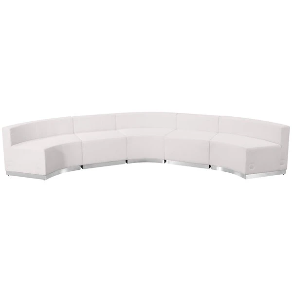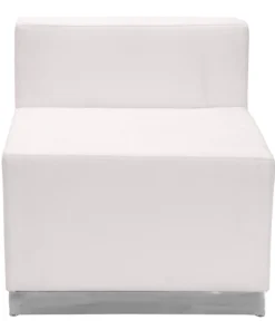 Your lobby or reception area is the forefront of your business and providing distinguished and comfortable seating is the first step towards making a great impression. This collection offers modular pieces that will allow you to reconfigure the space to accommodate your guests as your business grows. Purchase this complete set and add on any additional pieces now or later. <ul><li>Contemporary Reception Set</li><li>Modernize Your Business Office or Entry Way</li><li>Add on pieces as your business grows</li><li>Modular components make reconfiguring easy with endless possibilities</li><li>Features:</li><li>Melrose White LeatherSoft Upholstery</li><li>Exposed Embellished Stitching</li><li>Taut Seat and Back</li><li>Foam Filled Cushions</li><li>CA117 Fire Retardant Foam</li></ul>