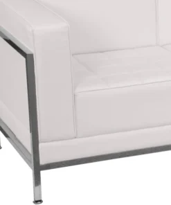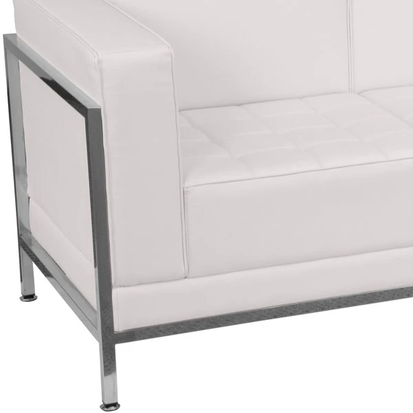 Your lobby or reception area is the forefront of your business and providing distinguished and comfortable seating is the first step towards making a great impression. This collection offers modular pieces that will allow you to reconfigure the space to accommodate your guests as your business grows. Purchase this complete set and add on any additional pieces now or later. <ul><li>Contemporary Reception Set</li><li>Add on pieces as your business grows</li><li>Modular components make reconfiguring easy with endless possibilities</li><li>Features:</li><li>Melrose White LeatherSoft Upholstery</li><li>Straight Arm Design</li><li>Smooth Back and Tufted Seat</li><li>Fixed Seat and Back Cushions</li><li>Foam Filled Cushions</li><li>CA117 Fire Retardant Foam</li></ul>