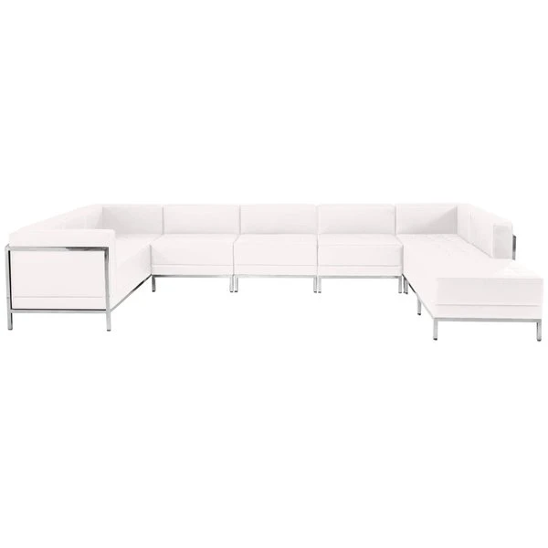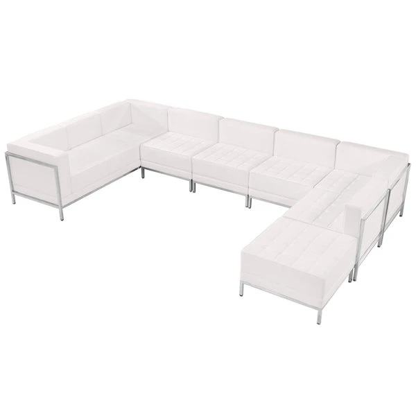 Your lobby or reception area is the forefront of your business and providing distinguished and comfortable seating is the first step towards making a great impression. This collection offers modular pieces that will allow you to reconfigure the space to accommodate your guests as your business grows. Purchase this complete set and add on any additional pieces now or later. <ul><li>Contemporary Reception Set</li><li>Add on pieces as your business grows</li><li>Modular components make reconfiguring easy with endless possibilities</li><li>Features:</li><li>Melrose White LeatherSoft Upholstery</li><li>Straight Arm Design</li><li>Smooth Back and Tufted Seat</li><li>Fixed Seat and Back Cushions</li><li>Foam Filled Cushions</li><li>CA117 Fire Retardant Foam</li></ul>