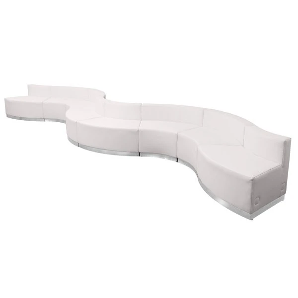 Your lobby or reception area is the forefront of your business and providing distinguished and comfortable seating is the first step towards making a great impression. This collection offers modular pieces that will allow you to reconfigure the space to accommodate your guests as your business grows. Purchase this complete set and add on any additional pieces now or later. <ul><li>Contemporary Reception Set</li><li>Modernize Your Business Office or Entry Way</li><li>Add on pieces as your business grows</li><li>Modular components make reconfiguring easy with endless possibilities</li><li>Features:</li><li>Melrose White LeatherSoft Upholstery</li><li>Exposed Embellished Stitching</li><li>Taut Seat and Back</li><li>Foam Filled Cushions</li><li>CA117 Fire Retardant Foam</li></ul>