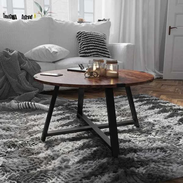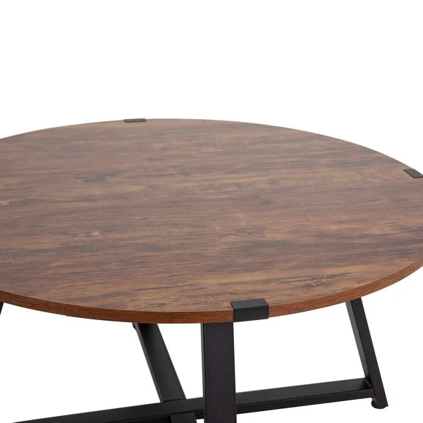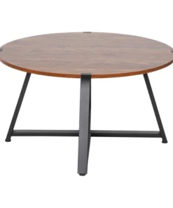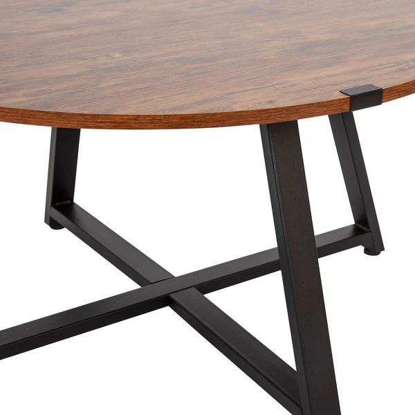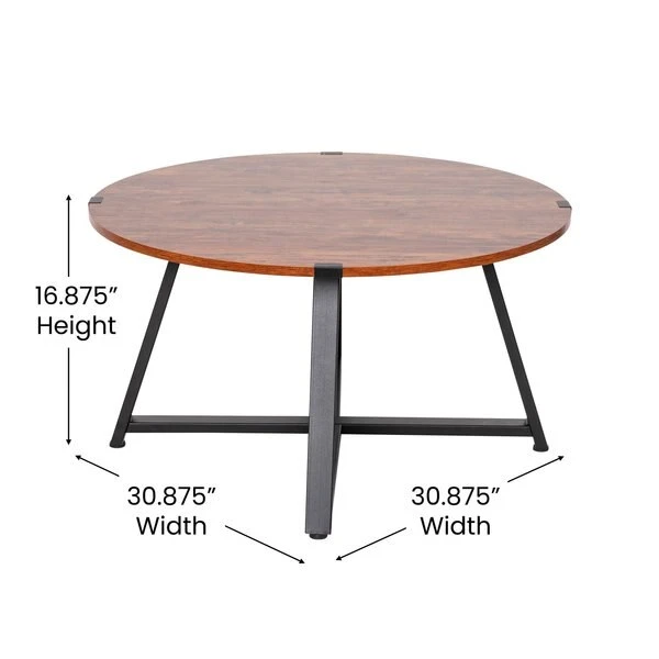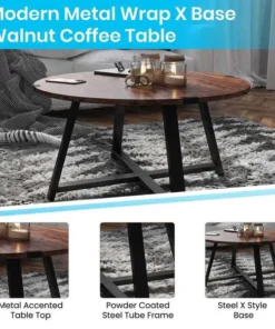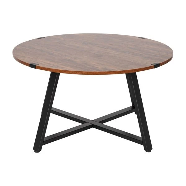 Step away from the ordinary and add a fresh new look to your home or business with this upgraded round coffee table. Round tables are extremely versatile and can be used in multiple areas to soften the straight lines of sofas and chairs and will tie the decor in your reception area together for a polished look. Circular tables can be used in large rooms as display tables and they give the illusion of space which is great for smaller living areas. Strength and durability are evident in the composition of this coffee table. Smoothly textured engineered wood in a smooth walnut finish sits atop a powder coated black steel tube X style frame. Metal screw reinforcements allow this table to accommodate up to 100 lbs. static weight capacity. Assemble your new coffee table in 30 minutes or less with included materials. Maintain the appearance of this display table easily by wiping with a dry cloth to remove spills and dust. Adjustable plastic floor glides protect your hard flooring surfaces.