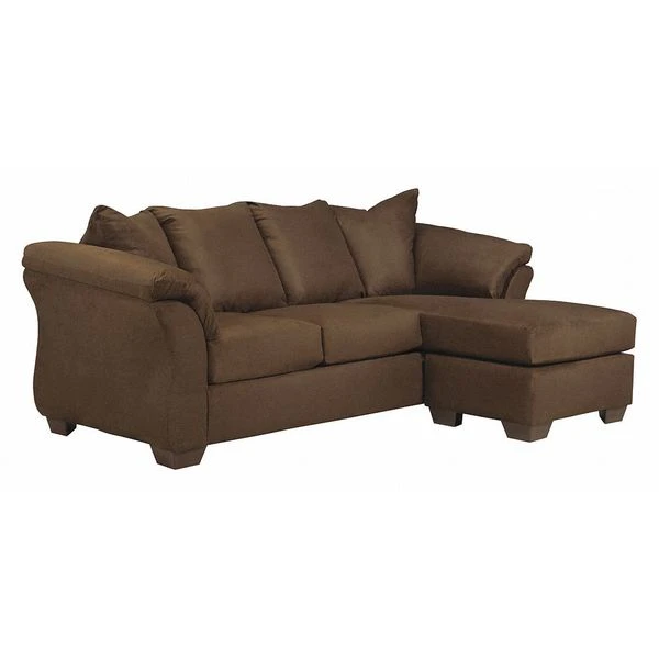 Talk about fine lines and great curves. That's the beauty of this sofa chaise, made to suit your appreciation for clean, contemporary style. A striking flared frame, comfy pillow top armrests and an ultra-soft upholstery that holds up to everyday living complete this fashion statement. <ul><li>Contemporary Style</li><li>Cafe Microfiber Upholstery</li><li>Plush Upholstered Arms</li><li>Fixed Pillow Back Cushions</li><li>Loose Seat Cushions</li><li>CA117 Fire Retardant Foam</li><li>Black Bottom Dust Cover</li><li>Plastic Triblock Feet</li><li>Durable Frame Construction</li><li>Seat and Back Spring Rails cut from .875'' Thick Hardwood</li></ul>