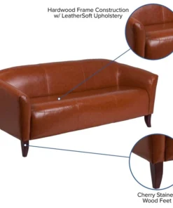 Your lobby or reception area is the forefront of your business and providing distinguished and comfortable seating is the first step towards making a great impression. The modern appeal of this LeatherSoft sofa will make a lasting impression with your visitors. LeatherSoft is leather and polyurethane for softness and durability. The contemporary design of this furniture adapts in several different settings. This sofa features streamlined stitching and elevated, curved hardwood feet. Not only will this piece fit in a professional environment, but will add a modern look to your home.