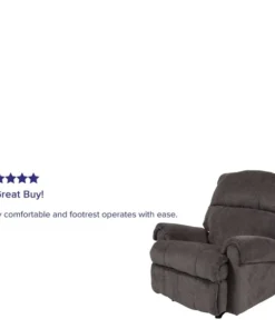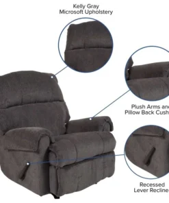 Make yourself supremely comfortable while you enjoy the high end look of this traditionally designed kelly gray microfiber upholstered lever rocker recliner. The gentle back and forth rocking motion is soothing to both babies and adults giving this piece the versatility to be used not only in the living room, but also as a nursery chair. Super soft microfiber upholstery provides warmth while a quick pull on the lever lets you find the perfect reclining position. Spills and other messes can be cleaned with a water-based cleaner. Reclining furniture offers the best in relaxation for you to kick up your feet and watch TV, work on a laptop, or just hang out with family and friends.