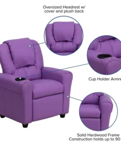 Flash Furniture Kids Recliner, 21-1/2" to 36-1/2" x 27", Upholstery Color: Lavender