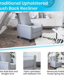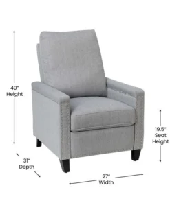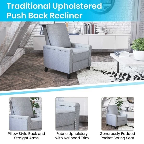 Flash Furniture Light Gray Push Back Recliner – Accent Nail Trim