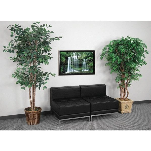 Your lobby or reception area is the forefront of your business and providing distinguished and comfortable seating is the first step towards making a great impression. This collection offers modular pieces that will allow you to reconfigure the space to accommodate your guests as your business grows. Purchase this complete set and add on any additional pieces now or later. <ul><li>Contemporary Reception Set</li><li>Add on pieces as your business grows</li><li>Modular components make reconfiguring easy with endless possibilities</li><li>Features:</li><li>Black LeatherSoft Upholstery</li><li>Smooth Back and Tufted Seat</li><li>Fixed Seat and Back Cushions</li><li>Foam Filled Cushions</li><li>CA117 Fire Retardant Foam</li><li>Exposed Accent Bar</li></ul>