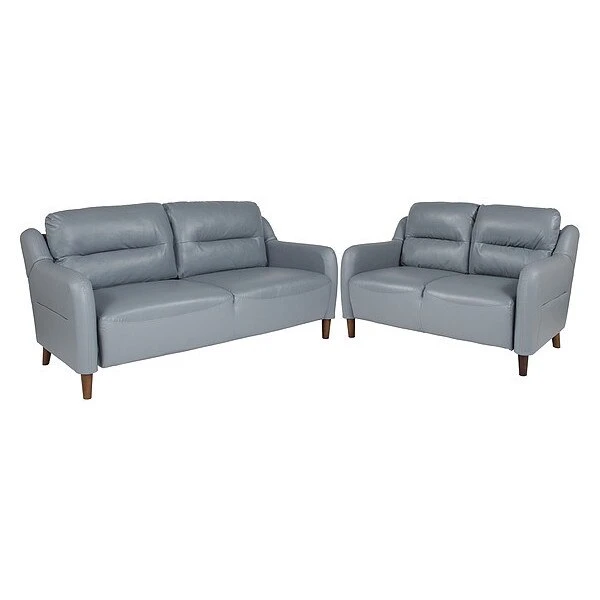 Come home and relax on this gray two-piece living room set that is ideal for small spaces. The oversized bustle back cushions offers just the right amount of comfort. The back cushions are removable with a hook and loop system that keeps them securely in place. The generous seat cushions in the couch and loveseat are kept well-maintained with a fixed construction. Your favorite items are kept within reach since the seat cushions don't go all the way to the frame. The rounded edged arms give your arms a proper resting position, perfect for lounging. Rounding out the details of this sofa set is the curved line top stitching throughout the upholstery and the high legs are not only appealing, but offer ease of cleaning underneath the couch and spills clean up easily with a water-based cleaner. The sleek style of this set will blend seamlessly into your home with its oversized back cushions and comfortably curved design.