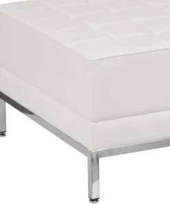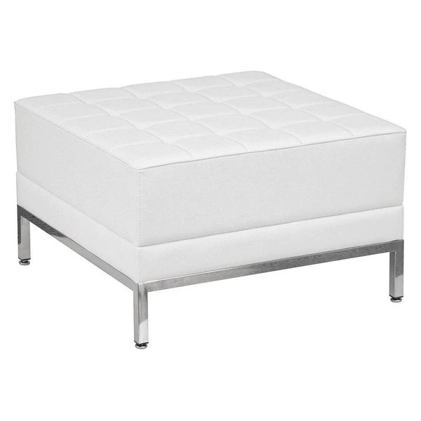 Your lobby or reception area is the forefront of your business and providing distinguished and comfortable seating is the first step towards making a great impression. This ottoman can be used in different seating arrangements or as a spot for clients put their belongings while they wait. Featuring white LeatherSoft tufted upholstery, this elegantly designed ottoman is easy to clean and maintain. LeatherSoft is leather and polyurethane for added softness and durability. This ottoman has a fixed foam filled cushion to provide your guests supreme comfort. This exceptionally durable ottoman is constructed with an integrated stainless steel frame which will withstand years of use. This innovative contemporary ottoman will bring comfort and trend-setting style to your waiting room, reception area or lounge.