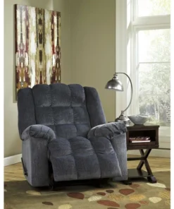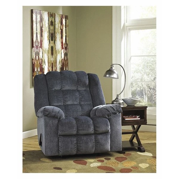 Sit down, kick back and relax in an "easy chair" that's wonderfully easy on the body and the budget. This blue recliner delights the senses with ultra plush upholstery in a handsomely textured twill. Divided bustle design and puckered stitching meld comfort and style. Ample pillow top armrests make it an all-the-more restful place to unwind. Spills and other messes can be taken care of with a water-based cleaner. Drape a throw blanket over the back and add a soft decorative pillow to have the ultimate comfort oasis.