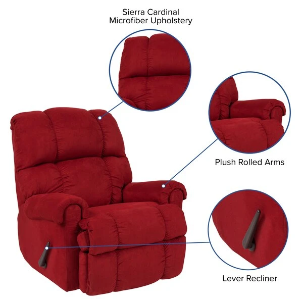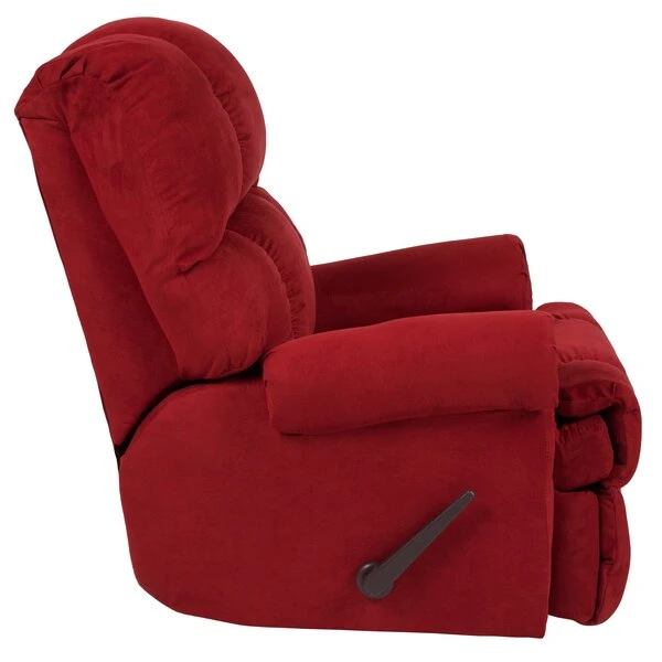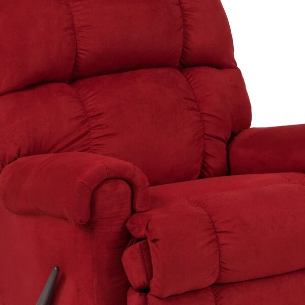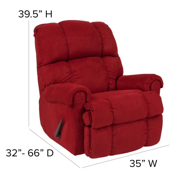 Immerse yourself in cozy warmth and softness on this plush microfiber upholstered recliner. Reclining furniture offers the best in relaxation for you to kick up your feet to watch TV, work on a laptop, or to just hang out with family and friends. With a quick pull on the lever you can situate yourself in a comfortable position. Recliners provide good neck and lumbar support, making them the most popular seating choice for everyday use. If you're in the market for a plush rocker recliner, you cannot go wrong with this very attractive contemporary piece. Use as a traditional recliner or a soothing rocker that can help those with sleep issues, nursing mothers and those great dads that help out with midnight feedings.