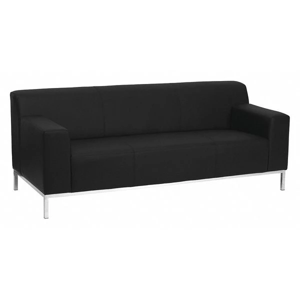 Create a comfortable setting for your guests that will make waiting more pleasant. Your lobby or reception area is the forefront of your business and providing distinguished and comfortable seating is the first step towards making a great impression. The set features a back that slightly protrudes pasts the arms and stainless steel legs that elevate it off the ground. This sofa will adapt in a variety of environments with its clean line appearance, thick fixed cushion seats and overall comfort level. <ul><li>Contemporary Style</li><li>Black LeatherSoft Upholstery</li><li>Straight Arm Design</li><li>Fixed Seat Cushion</li><li>Attractive Line Stitching throughout</li><li>Foam Filled Cushions</li><li>CA117 Fire Retardant Foam</li><li>Integrated Stainless Steel Legs</li><li>LeatherSoft is leather and polyurethane for added Softness and Durability</li></ul>