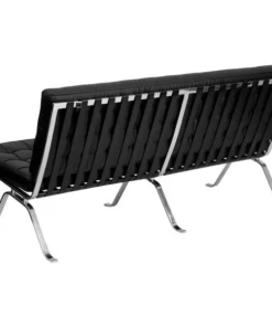 Your lobby or reception area is the forefront of your business and providing distinguished and comfortable seating is the first step towards making a great impression. This sofa will not disappoint with its vintage, contemporary design. This armless sofa features an exposed frame, button tufted cushions and designer legs. Not only will this chair fit in a professional environment, but can be used in the home. <ul><li>Vintage Inspired Style</li><li>Black LeatherSoft Upholstery</li><li>Button Tufted Seat and Back</li><li>Removable Cushions</li><li>Foam Filled Cushions</li><li>CA117 Fire Retardant Foam</li><li>Vertical Seat and Back Supports</li><li>Designer Curved Legs</li><li>Polished Stainless Steel Frame</li><li>LeatherSoft is leather and polyurethane for added Softness and Durability</li></ul>