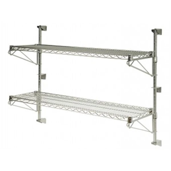 Take advantage of the extra storage space walls offer. Ideal for storing items conveniently overhead or above sinks. work tables. counters. or desks. Accommodates all 12 in. . 14 in. . 18 in. . 21 in. . and 24 in. (30.5. 35.5. 45.7. 53.0. and 61.0 cm.) wide shelves. Wire lugs on brackets fit corner collar openings on shelves. Chromate shelf caps are included to cover openings in tops of shelves for greater sanitation.Choose from single or double supports. Double supports are used for continuous runs of shelving. Single supports are used at each end of a shelf.Available in Green Epoxy for wet or dry environments. Chromate finish is for dry environmentsFeaturesFinish – ChromatePack of 2Size – 24 in.