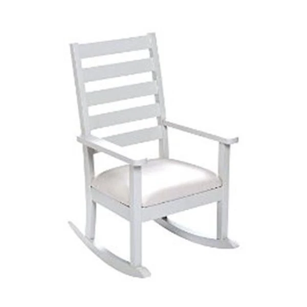 FeaturesThe Gift mark Mission Child Rocking Chair is made of 100% Solid WoodHorizontal Slat (ladder back) Back DesignThe seat Cushion will wipe clean with Mild Soap and WaterThe Upholstered Seat is covered in a Faux leather materialThis oversized Rocking Chair. will be the hit in the Nursery. Living Room or DenThis handcrafted Heirloom quality Rocking Chair. will offer years of enjoyment for several generationsAll Tools Included for easy assemblyColor – White