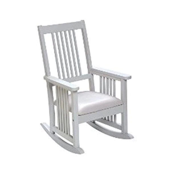 FeaturesThe Gift mark Mission Child Rocking Chair is made of 100% Solid WoodHorizontal Slat (ladder back) Back DesignThe seat Cushion will wipe clean with Mild Soap and WaterThe Upholstered Seat is covered in a Faux leather materialThis oversized Rocking Chair. will be the hit in the Nursery. Living Room or DenThis handcrafted Heirloom quality Rocking Chair. will offer years of enjoyment for several generationsAll Tools Included for easy assemblyColor – White